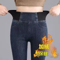 高腰牛仔褲女長褲2026秋冬季新款加大碼胖mm修身鬆緊腰小腳褲加絨