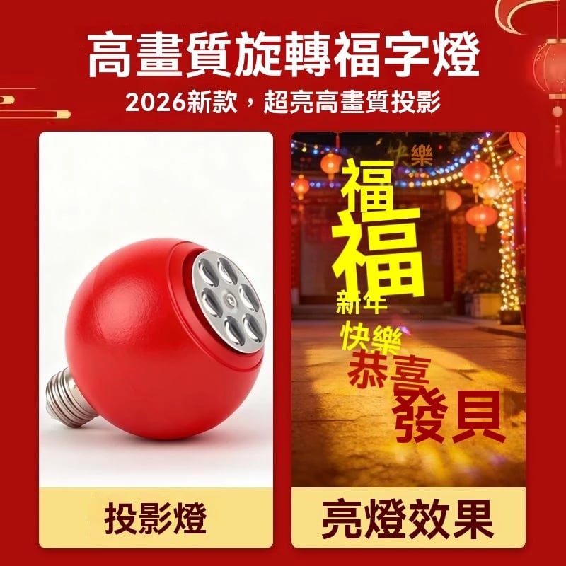 [2]「旋轉投影福字燈」新年氛圍感拉滿 贈萬向燈座 2入組NT$1098