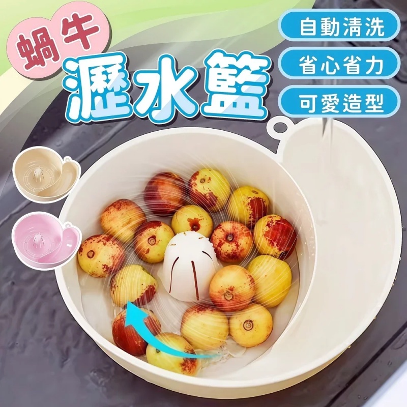 廚房洗菜新樂趣 蝸牛瀝水籃 自帶自動清洗功能 水流沖刷乾淨省力 可愛造型還能當果盤